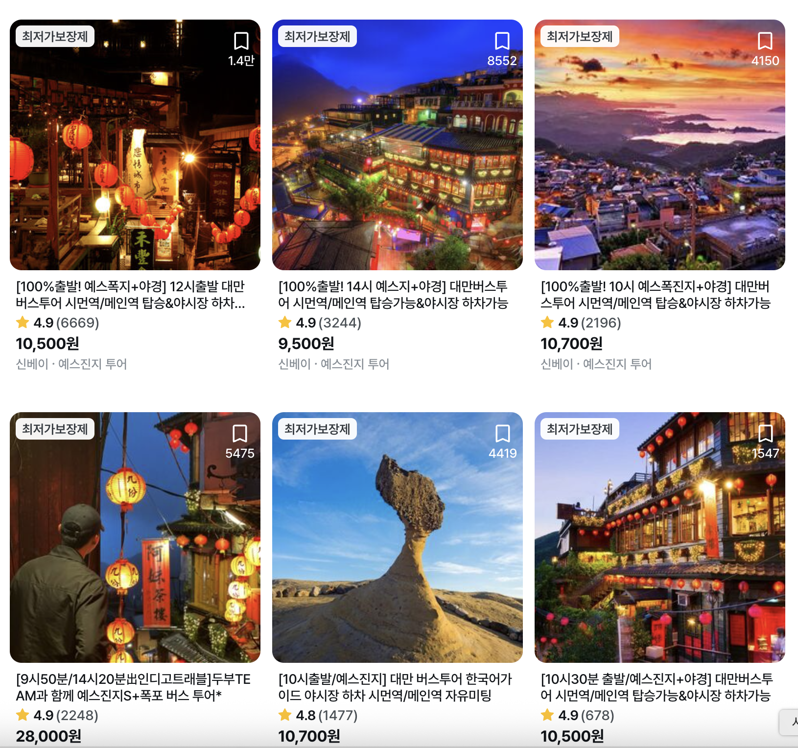 이 세 곳을 버스투어로 하루에 모두 둘러보는 일정을 보통 “대만 예스진지 버스투어”라고 부릅니다. 타이베이에서 출발하고 다시 돌아오기 때문에 일정 짜기도 쉽고 효율적이에요.